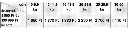Szállítási díjak utánvétellel: